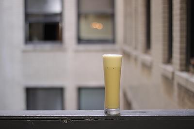 Channel your favorite mixologist, and shake like a mad person for 30 seconds. Don't skimp out here, the more you shake, the frothier your latté will be.