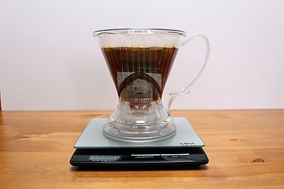 Just after two and a half minutes, it’s time to draw down your coffee. Take your Clever Dripper off the scale and place it over a carafe. The coffee will “draw down” through the dripper - leaving the grounds up top in the filter. This process should take 30-45 seconds. Make sure your carafe is big enough to accommodate the amount of coffee you’re brewing - you don’t want your fresh brew to overflow onto your kitchen counter!
