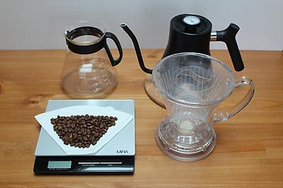 The ratio of coffee to water should be 1:16. In this case, we’re using 21g of coffee, so we’ll use 336g of water.