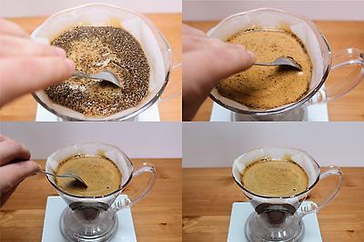 At around a minute after your pour, It’s a good idea to stir your brew to ensure all the grounds are fully immersed. No need to stir vigorously - just agitate the brew enough to break any “crust” of grounds floating at the top of the coffee.
