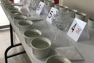 The first day of the CoE competition is for calibration. This is a process that helps get the judges on the same page, ensuring that everyone has a common understanding of the different flavors and characteristics of the coffee to be judged, and a common vocabulary for describing them. An interesting part of this process involved the judges cupping solutions that contain the different types of acids present in coffee (malic, citric, and tartaric) and different combinations of sugars. Some of these cups were pretty unpleasant to taste - but doing so gives the judges a refresher on these flavors and helps ensure everyone is cupping and scoring with a common understanding.