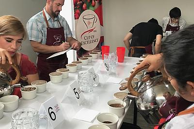 After calibration, the competition cupping begins! The Cup of Excellence draws a lot of entrants - with around 300 coffees submitted in Peru this year. The coffees are first judged nationally by coffee professionals and go through a few rounds of extensive cupping to cut the field down to coffees scoring above 85 points. Then those coffees are cupped by the international jury, who determine the top 30 to be considered Cup of Excellence coffees in the second round of the international competition. The semifinalists that don’t move on are considered 'National Winners' if they score above 86 points but don't qualify for the finals.